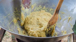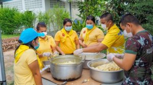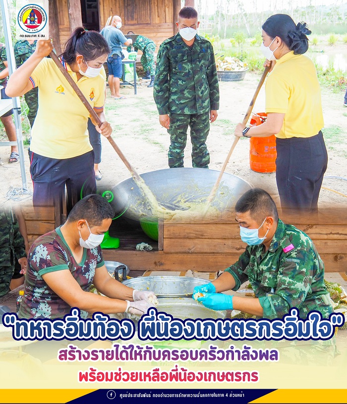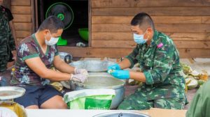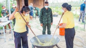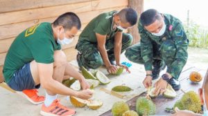 พลตรี ไพศาล หนูสังข์ ผู้บัญชาการกองพลทหารราบที่15 / ผู้บังคับหน่วยเฉพาะกิจนราธิวาส เยี่ยมชมการแปรรูปทุเรียนพันธุ์พื้นบ้าน เป็นทุเรียนกวน ของกำลังพล และ ครอบครัว หน่วยเฉพาะกิจนราธิวาส ณ ลานเอนกประสงค์ หน่วยเฉพาะกิจนราธิวาส ค่ายกัลยานิวัฒนา ตำบลกะลุวอเหนือ อำเภอเมือง จังหวัดนราธิวาส ซึ่งทุเรียน เป็นผลไม้ตามฤดูกาล เกษตรกรในพื้นที่ บ้านกาหนั๊วะ ตำบลกาลิซา อำเภอระแงะ จังหวัดนราธิวาส นิยมปลูกเป็นจำนวนมาก โดย ผู้บังคับหน่วยเฉพาะกิจนราธิวาส ตระหนักถึงสถานการณ์โควิด-19 ในปัจจุบัน ประชาชนในพื้นที่ไม่สามารถออกมาค้าขายทุเรียนได้สะดวก จึงรับเหมาซื้อทุเรียนพันธุ์พื้นบ้าน จำนวน 1 ตัน เพื่อเป็นการช่วยเหลือประชาชนที่ประกอบอาชีพเกษตรกรในพื้นที่ โดยการรับซื้อผลผลิตทางเกษตร (ทุเรียนพันธุ์พื้นบ้าน) นำไปแจกจ่ายให้กับกำลังพลของหน่วย เพื่อเป็นขวัญและกำลังใจ ตามโครงการ “เกษตรกรสุขใจ กำลังพลอิ่มท้อง”