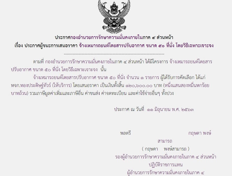 ประกาศผู้ชนะการเสนอราคา จ้างเหมารถยนต์โดยสารปรับอากาศ ขนาด 50 ที่นั่ง โดยวิธีเฉพาะเจาะจง (120,600.00)(1)