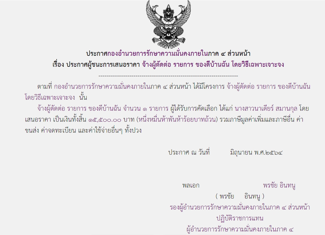 ประกาศผู้ชนะการเสนอราคา จ้างผู้ตัดต่อ รายการ ของดีบ้านฉัน โดยวิธีเฉพาะเจาะจง ( ๑๕,๕๐๐.๐๐ บาท )