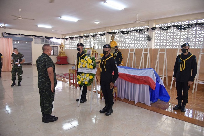 ในการนี้ แม่ทัพภาคที่ 4 ได้เป็นผู้แทนวางหรีดเคารพศพของ พลเอก ประยุทธ์ จันทร์โอชา นายกรัฐมนตรี , พลเอก ณรงค์พันธ์ จิตต์แก้วแท้ ผู้บัญชาการทหารบกและวางหรีดเคารพศพ ในนามแม่ทัพภาคที่ 4 /ผู้อำนวยการรักษาความมั่นคงภายในภาค 4 พร้อมกันนี้พันเอกทวีรัตน์ เบญจาทิกุล ผู้บังคับหน่วยเฉพาะกิจกรมทหารพรานที่ 45 ได้เป็นผู้แทน ครอบครัวของอาสาสมัครทหารพราน เกียรติขจร นาคดี รับมอบเข็มบางระจัน เพื่อประกาศเกียรติคุณยกย่องเชิดชูเกียรติแก่วีรชนผู้กล้า ที่เสียสละเพื่อความสงบของพื้นที่จังหวัดชายแดนภาคใต้ ตลอดจนรับมอบเงินช่วยเหลือเยียวยาเบื้องต้น และเนื่องจากอาสาสมัครทหารพราน เกียรติขจร มีภูมิลำเนาอยู่ในพื้นที่จังหวัดขอนแก่น ซึ่งเป็นพื้นที่ควบคุมสูงสุด (สีแดง) ประกอบกับอยู่ในช่วงสถานการณ์ประกาศล็อกดาวน์ 29 จังหวัดของประเทศไทย ครอบครัวจึงไม่สามารถเดินทางมาร่วมพิธี และรับศพได้ แม่ทัพภาคที่ 4 จึงได้สั่งการหน่วยต้นสังกัดดำเนินการอย่างสมเกียรติ เพื่อนำศพอาสาสมัครทหารพราน เกียรติขจร นาคดี กลับไปประกอบพิธีทางศาสนายังภูมิลำเนาต่อไป ก่อนเข้าสู่พิธีรดน้ำศพตามลำดับ ขณะที่ พลเอก ณรงค์พันธ์ จิตต์แก้วแท้ ผู้บัญชาการทหารบก ได้ฝากความห่วงใย และแสดงความเสียใจมายังครอบครัวผู้สูญเสีย พร้อมสั่งการเร่งช่วยเหลือเยียวยาด้านสิทธิต่าง ๆ ตามระเบียบของทางราชการอย่างเร็วที่สุด