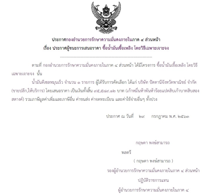 ประกาศผู้ชนะการเสนอราคา ซื้อน้ำมันเชื้อเพลิง โดยวิธีเฉพาะเจาะจง (95,589.12)
