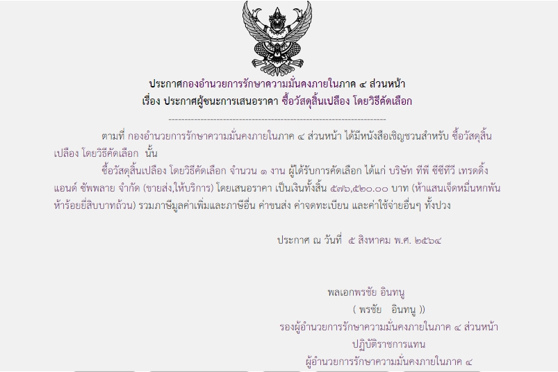 ประกาศผู้ชนะการเสนอราคา ซื้อวัสดุสิ้นเปลือง โดยวิธีคัดเลือก ( ๕๗๖,๕๒๐.๐๐ บาท )