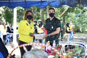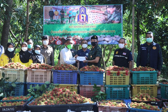 พลตรี ศานติ ศกุนตนาค ผู้บังคับหน่วยเฉพาะกิจสงขลา กล่าวว่า สถานการณ์การแพร่ระบาดของเชื้อไวรัส Covid – 19 ส่งผลให้ผลผลิตทางการเกษตรของประชาชนในพื้นที่ออกสู่ตลาดจำนวนมาก ทำให้มีราคาตกต่ำ เกษตรกรได้รับความเดือดร้อน กองทัพบก จึงมีนโยบายให้หน่วยทหารเข้าไปช่วยเหลือเกษตรกรในพื้นที่ต่างๆ ตามโครงการทหารอิ่มท้อง เกษตรกรอิ่มใจ เพื่อช่วยเหลือ ดูแล ลดภาระของประชาชน ซึ่งผลผลิตทางการเกษตรที่ได้รับซื้อจากเกษตรกรในวันนี้ เป็นเงาะ จำนวน 1,200 กิโลกรัม โดยจะนำไปส่งมอบให้กับเจ้าหน้าที่ทหาร และประชาชนในพื้นที่บริเวณรอบค่ายทหาร ที่ได้รับผลกระทบจากการแพร่ระบาดของเชื้อไวรัส Covid – 19 เพื่อเป็นขวัญและกำลังใจให้กับพี่น้องประชาชนและเจ้าหน้าที่ในการปฏิบัติหน้าที่ต่อไป