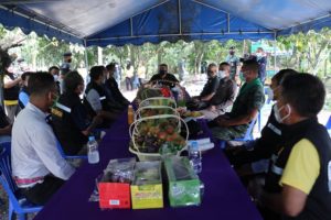 วันนี้ ( 5 สิงหาคม 2564 ) เวลา 15.30 น. ที่ บ้านเลขที่ 31 หมู่ที่ 9 บ้านโพรงจรเข้ ตำบลขุนตัดหวาย อำเภอจะนะ จังหวัดสงขลา พลตรี ศานติ ศกุนตนาค ผู้บังคับหน่วยเฉพาะกิจสงขลา ลงพื้นที่รับซื้อผลผลิตทางการเกษตร จากเกษตรกรชาวสวนเงาะในพื้นที่อำเภอจะนะ จังหวัดสงขลา จำนวน 1,200 กิโลกรัม เพื่อช่วยเหลือ ลดภาระ บรรเทาความเดือดร้อนปัญหาราคาผลไม้ตกต่ำ และได้รับผลกระทบจากการแพร่ระบาดของเชื้อไวรัส Covid – 19 ที่ไม่สามารถระบายสินค้าออกจำหน่ายได้ โดยมี นายอำเภอจะนะ เจ้าหน้าที่ทหาร ตำรวจ ฝ่ายปกครอง เกษตรกรชาวสวนและส่วนที่เกี่ยวข้องร่วมให้การต้อนรับ