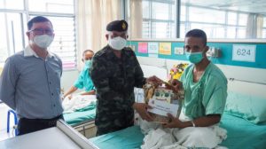 จากนั้น พลตรีไพศาล หนูสังข์ ได้เดินทางไปยังโรงพยาบาลสุไหงโก-ลก อำเภอสุไหงโก-ลก จังหวัดนราธิวาส เพื่อเยี่ยมให้กำลังใจกำลังพลที่ได้รับบาดเจ็บจากเหตุการณ์ความไม่สงบในพื้นที่ อำเภอตากใบ จังหวัดนราธิวาส จำนวน 4 นายได้แก่ จ่าสิบเอก กฤษฎา แซ่บุ๋น , อาสาสมัครทหารพราน มานะ เร็วสูงเนิน, อาสาสมัครทหารพราน วุฒินันท์ ภารกิจ และ อาสาสมัครทหารพราน วิทวัฒน์ อินทะนะนก ซึ่งเป็นกำลังพลสังกัดกองร้อยทหารพรานที่ 4514 หน่วยเฉพาะกิจกรมทหารพรานที่ 45 ได้สอบถามอาการ และเหตุการณ์ที่เกิดขึ้น พร้อมทั้งมอบความห่วงใย ตลอดจนกล่าวชื่นชมกำลังพลในการปฏิบัติงานที่ทุ่มเท และเสียสละ ขอให้มีขวัญและกำลังใจที่ดี กลับมาปฏิบัติหน้าที่ต่อไป พร้อมกำชับให้ทุกส่วนที่เกี่ยวข้องดูแลรักษาฟื้นฟูสภาพกำลังพล ทั้งทางด้านร่างกาย และจิตใจที่ได้รับบาดเจ็บอย่างดีที่สุด