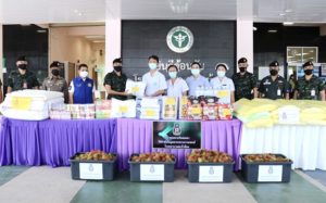 จากนั้นเวลา 15.00 น. คณะได้เดินทางต่อไปยัง โรงพยาบาลนาทวี อำเภอนาทวี จังหวัดสงขลา เพื่อพบปะ เยี่ยมเยียน บุคลากรทางการแพทย์ พร้อมมอบสิ่งของอุปโภค-บริโภค ถุง PE และผ้าดิบ ให้แก่โรงพยาบาลนาทวี เพื่อสร้างขวัญกำลังใจให้แก่บุคลากรทางการแพทย์ ท่ามกลางมาตรการป้องกันตนเองจาก Covid – 19 อย่างเข้มงวด
