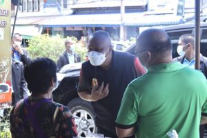 จากนั้น แม่ทัพภาคที่ 4 เดินทางลงพื้นที่ ชุมชนนาประดู่ ตำบลนาประดู่ อำเภอโคกโพธิ์ จังหวัดปัตตานี พบปะเยี่ยมเยียนให้กำลังใจพี่น้องประชาชน ตลอดจนประชาสัมพันธ์สร้างความเข้าใจ และขอความร่วมมือกับพี่น้องประชาชนถึงการปฏิบัติตนภายใต้ มาตรการการป้องกันการแพร่ระบาดของเชื้อไวรัส covid-19 ตามกระทรวงสาธารณสุข และจังหวัดได้กำหนด แม้สถานการณ์การแพร่ระบาดของเชื้อไวรัส covid-19 ยังคงมีความน่าเป็นห่วง แต่หากทุกภาคส่วน รวมทั้งพี่น้องประชาชนได้ร่วมมือการเฝ้าระวัง ป้องกัน เราจะสามารถผ่านพ้นวิกฤตครั้งนี้ได้อย่างแน่นอน ก่อนมอบสเปรย์แอลกอฮอล์ และหน้ากากอนามัย ใช้ในการป้องกันตนเอง สร้างความปลอดภัยเป็นขวัญและกำลังใจแก่พี่น้องประชาชนในพื้นที่