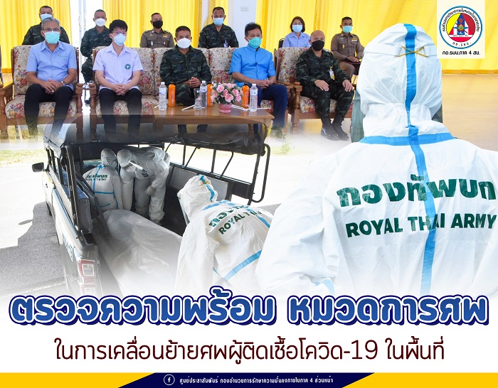 ณ สโมสรนายทหารสัญญาบัตร กรมสนับสนุน กองพลทหารราบที่ 15 ตำบลเกาะสะบ้า อำเภอเทพา จังหวัดสงขลา พลตรี ไพศาล หนูสังข์ ผู้บัญชาการกองพลทหารราบที่ 15 เป็นประธานในการตรวจความพร้อม หมวดการศพในการเคลื่อนย้ายศพผู้ติดเชื้อโควิด-19 ในพื้นที่จังหวัดชายแดนภาคใต้ โดยกองพลทหารราบที่ 15 ได้ปฏิบัติตามนโยบายของ พลเอก ณรงค์พันธ์ จิตต์แก้วแท้ ผู้บัญชาการทหารบก สั่งการให้หน่วยขึ้นตรงของกองทัพบก ที่มีอัตราหมวดศพให้เตรียมความพร้อม ในการให้การสนับสนุนการเคลื่อนย้ายศพผู้ติดเชื้อโควิค-19 ร่วมกับ สาธารณสุขประจำจังหวัด ลงพื้นที่เข้าไปช่วยเหลือพี่น้องประชาชนที่ได้รับความเดือดร้อน จากสถานการณ์โควิด-19 อย่างต่อเนื่อง โดยมี พันเอก พสุธาร สมิตานนท์ ผู้บังคับการกรมสนับสนุน กองพลทหารราบที่ 15, พันโท สุบิน ชะรอยรัมย์ ผู้บังคับ กองพันส่งกำลังและบริการ กรมสนับสนุน กองพลทหารราบที่ 15, เจ้าหน้าที่สาธารณสุขอำเภอเทพา, เจ้าหน้าที่ตำรวจ, ฝ่ายปกครอง และส่วนที่เกี่ยว เข้าร่วมกิจกรรม