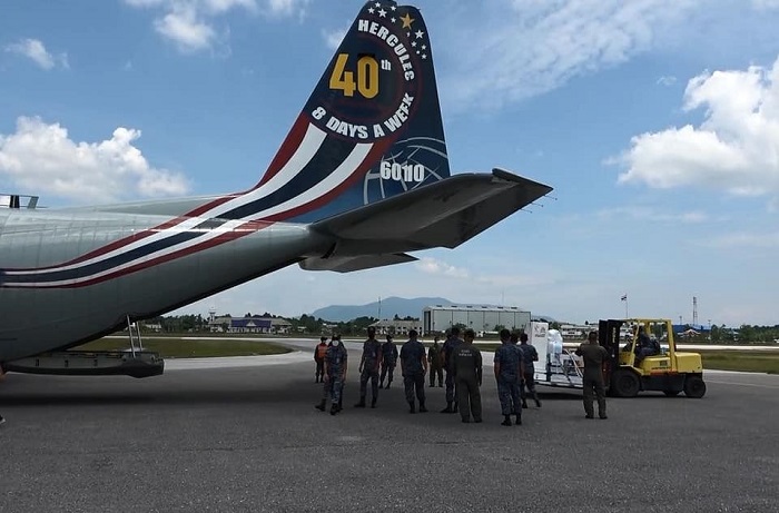 โดยนาวาอากาศเอก พานิช โพธิ์นอก ผู้บังคับการกองกำลังทางอากาศเฉพาะกิจที่ 9 ได้ดำเนินการส่งมอบ ซึ่งมีบุคลากรที่ทางแพทย์จากโรงพยาบาลปัตตานีเป็นผู้รับมอบ ณ สนามบินปัตตานี ตำบลบ่อทอง อำเภอหนองจิก จังหวัดปัตตานี และกองกำลังทางอากาศเฉพาะกิจที่ 9 จะดำเนินการขนส่งอุปกรณ์ทางการแพทย์ไปยังโรงพยาบาลในพื้นที่จังหวัดปัตตานี ได้แก่ โรงพยาบาลปัตตานี โรงพยาบาลกะพ้อ และโรงพยาบาลมายอ ในพื้นที่จังหวัดยะลา ได้แก่ โรงพยาบาลยะลา โรงพยาบาลเบตง และในพื้นที่จังหวัดนราธิวาส ได้แก่ โรงพยาบาลนราธิวาส และโรงพยาบาลสุไหงโกลก เพื่อช่วยเหลือผู้ป่วยโรคโควิด – 19 ที่มีความจำเป็นเร่งด่วนต่อไป