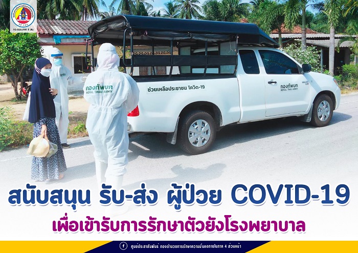 ซึ่งกองทัพบกได้มีการให้หน่วยทหารในพื้นที่ปรับแต่งยานพาหนะมาใช้ให้เกิดประโยชน์สูงสุด ทั้งภารกิจด้านการทหารและการช่วยเหลือประชาชนในสถานการณ์ COVID-19 เพื่อให้สามารถรองรับภารกิจได้ ครอบคลุมทั้งเรื่องการป้องกันการแพร่กระจายของเชื้อ, ระบบความปลอดภัย และคำนึงถึงความสะดวกสบายของผู้ป่วย เพื่อเข้ามาช่วยเหลือประชาชนในสถานการณ์วิกฤตโควิด-19 ทุกวิถีทาง ทั้งนี้ ผู้ป่วย COVID – 19 (สีเขียว) ที่มีความประสงค์จะกลับไปรักษายังภูมิลำเนาสามารถ ประสานไปยังศูนย์ประสานงานต้านภัยโควิดกองทัพบก โทร. 02-270-5685-9 ตลอด 24 ชั่วโมง กองทัพบกพร้อมประสานความช่วยเหลืออย่างเต็มที่