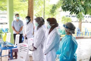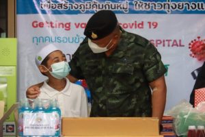 โดยแม่ทัพภาคที่ 4 ได้กล่าวกับพี่น้องประชาชนที่เข้ารับการรักษา covid-19 ยังโรงพยาบาลสนามแห่งนี้ว่า ” วันนี้มาให้กำลังใจบุคลากรทางการแพทย์ ทีมงานเจ้าหน้าที่ รวมไปถึงพี่น้องประชาชนที่เข้ารับการรักษาอาการติดเชื้อ covid-19 ขอให้พี่น้องประชาชนได้ เชื่อมั่น มั่นใจในทีมงานแพทย์ พยาบาล โรงพยาบาลทุ่งยางแดงที่ได้ดำเนินการรักษาดูแลทุกคนในขณะนี้ เพราะเจ้าหน้าที่ทุ่มเท เสียสละเพื่อพี่น้องทุ้งยาเเดง เมื่อทุกคนรักษาหายจนสามารถกลับบ้านได้แล้ว ขอให้ทุกคนได้ช่วยกันประชาสัมพันธ์ ช่วยกันสร้างความเข้าใจให้กับคนในครอบครัวและชุมชน เราจำเป็นต้องเฝ้าระวัง และต้องปฏิบัติตนตามมาตรการที่กระทรวงสาธารณสุขได้กำหนด ทั้งการสวมหน้ากากอนามัย การล้างมือ การเว้นระยะห่าง และการทำกิจกรรมร่วมกัน ไม่เช่นนั้นแล้วครอบครัว พี่น้อง คนที่เรารัก ก็จะติดไวรัส covid-19 ไปด้วย นอกจากนี้ยังต้องช่วยกันประชาสัมพันธ์ ถึงเรื่องการฉีดวัคซีน ป้องกัน covid -19 ที่ทางโรงพยาบาลจัดให้ ชนิดไหนก็แล้วแต่ดีทั้งหมด วัคซีนจะทำให้ลดความรุนแรงของ covid-19 ได้ ขอเป็นกำลังใจให้ทุกคน ขอให้ทุกคนสู้ๆ เราจะผ่านวิกฤตครั้งนี้ไปด้วยกัน” ก่อนเดินทางไปยังโรงพยาบาลทุ่งยางแดง พบปะ พูดคุยให้กำลังใจการทำงานของบุคลากรทางการแพทย์ และเจ้าหน้าที่ในการดูแลพี่น้องประชาชน กพร้อมมอบอุปกรณ์ในการป้องกันตนเอง ชุด ppe น้ำดื่ม ขนม ของว่างให้กับบุคลากรทางการแพทย์ เพื่อเป็นขวัญและกำลังใจในการปฏิบัติงานต่อไป