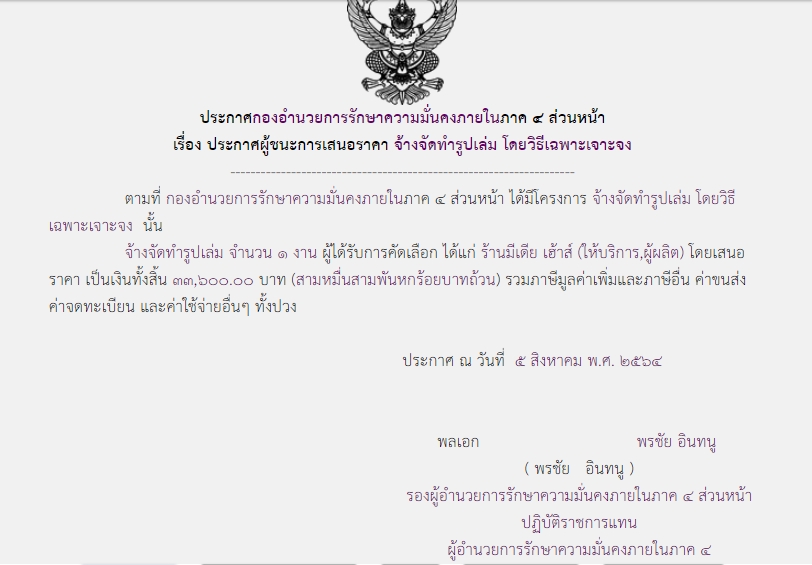ประกาศผู้ชนะการเสนอราคา จ้างจัดทำรูปเล่ม โดยวิธีเฉพาะเจาะจง ( ๓๓,๖๐๐.๐๐ บาท )
