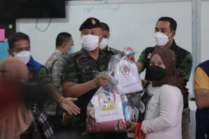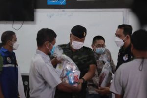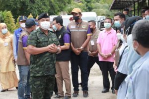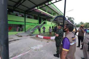 จากนั้น แม่ทัพภาคที่ 4 และคณะ ดินทางต่อยัง โรงเรียนบาเจาะ อำเภอบาเจาะ จังหวัดนราธิวาส ให้กำลังใจบุคลากรทางการแพทย์ อาสาสมัครสาธารณสุขเทศบาลตำบลบาเจาะ ประจำศูนย์เฝ้าระวัง สังเกตอาการไวรัสโคโรน่า 2019 (covid-19) ซึ่งเป็นเป็นศูนย์ที่ย้ายมาจากศูนย์พัฒนาเด็กเล็ก เมื่อวันที่ 9 สิงหาคมที่ผ่านมา ปัจจุบันมียอด จำนวน 10 ราย นอกจากนี้ยังได้พบปะ พูดคุยกับพี่น้องประชาชนประชาสัมพันธ์สร้างความเข้าใจในมาตรการการป้องกันการแพร่ระบาดของเชื้อไวรัส covid-19 เชิญชวนให้เข้ารับการฉีดวัคซีน ตลอดจนมอบเครื่องอุปโภค บริโภค ชุด PPE อุปกรณ์ในการป้องกันตนเองจากไวรัส covid-19 ให้กับทางเจ้าหน้าที่ ก่อนแม่ทัพภาคที่ 4 จะได้ตรวจเยี่ยมการเตรียมความพร้อมโรงพยาบาลสนามภายในโรงเรียนบาเจาะ สำหรับรองรับผู้ป่วยอาการไม่รุนแรง กลุ่มสีเขียว สามารถรับผู้ป่วยได้จำนวน 100 – 150 เตียง คาดว่าจะเเล้วเสร็จใน 2 อาทิตย์นี้