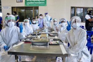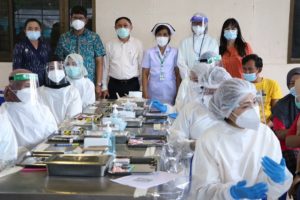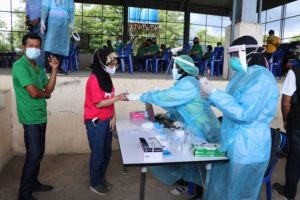 วันนี้ 18 สิงหาคม 2564 เวลา 15.30 น. นายธีรุตม์ ศุภวิบูลย์ผล รองผู้ว่าราชการจังหวัดยะลา พร้อมด้วย นายแพทย์อินทร์ จันแดง ผู้อำนวยการโรงพยาบาลยะลา, สาธารณสุขจังหวัด, พาณิชย์จังหวัด, เกษตรจังหวัด และองค์การบริหารส่วนจังหวัดยะลา ลงพื้นที่ตรวจเยี่ยมการฉีดวัคซีน พร้อมตรวจคัดกรองเชื้อโควิด 19 เชิงรุกให้กับพนักงานล้งทุเรียน และทำความสะอาดตลาดซื้อขายทุเรียน นอกจากนี้ยังได้รับชมการสาธิตการฉีดพ่นน้ำยาฆ่าเชื้อ ทั้งยังตรวจดูวิธีการคัดเลือกผลผลิตทุเรียนจากเกษตรกร เพื่อให้ทุเรียนปราศจากการปนเปื้อนของเชื้อโควิด-19 สร้างความเชื่อมั่นให้กับผู้บริโภคตลาดปลายทางทั้งในและต่างประเทศลดความเสี่ยงต่อการแพร่ระบาดของเชื้อโควิด 19 โดยมีผู้ประกอบการและพนักงานในล้งจังหวัดยะลาตรวจหาเชื้อโควิด 19 เชิงรุกและเข้ารับบริการฉีดวัคซีนโควิด 19 ในครั้งนี้ จำนวน 640 ราย