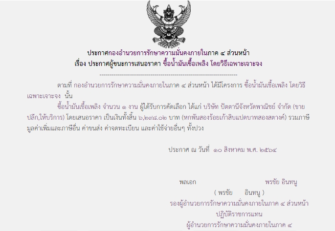 ประกาศผู้ชนะการเสนอราคา ซื้อน้ำมันเชื้อเพลิง โดยวิธีเฉพาะเจาะจง ( ๖,๒๙๘.๐๒ บาท )