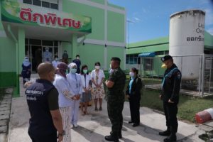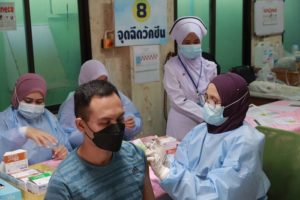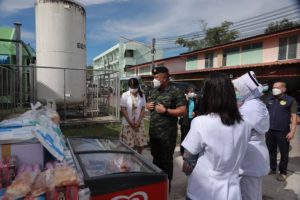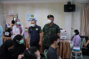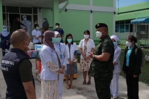 วันนี้ (20 สิงหาคม 2564) เวลา 09.00 น. ที่ โรงพยาบาลยะรัง อำเภอยะรัง จังหวัดปัตตานี พลโท เกรียงไกร ศรีรักษ์ แม่ทัพภาคที่ 4 / ผู้อำนวยการรักษาความมั่นคงภายในภาค 4 เดินทางลงพื้นที่ให้กำลังใจเจ้าหน้าที่บุคลากรทางการแพทย์ ตลอดจนพี่น้องประชาชนที่เข้ารับการฉีดวัคซีนโควิด-19 โดยได้พูดคุยถึงสถานการณ์การแพร่ระบาดของเชื้อไวรัสโควิด-19 ในพื้นที่ สอบถามปัญหาข้อขัดข้องในการดำเนินงาน การตอบรับของพี่น้องประชาชนต่อการฉีดวัคซีน ตลอดจนประชาสัมพันธ์สร้างความตระหนักรู้ในการปฏิบัติตนตามมาตรการป้องกันการแพร่ระบาดของเชื้อไวรัสโควิด-19 ให้กับประชาชน และสร้างความมั่นใจในวัคซีนที่รัฐบาลจัดหาให้ ก่อนมอบอุปกรณ์ในการป้องกันตนเองจากเชื้อไวรัสโควิด-19, ไอศกรีม, ขนม และของว่าง ให้กับบุคลากรทางการแพทย์ และพี่น้องประชาชนที่เข้ารับบริการฉีดวัคซีนโควิด-19 เพื่อให้มีกำลังใจต่อสู้กับเชื้อไวรัสโควิด-19 และเกิดความผ่อนคลายในการดูแลพี่น้องประชาชน