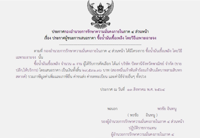 ประกาศผู้ชนะการเสนอราคา ซื้อน้ำมันเชื้อเพลิง โดยวิธีเฉพาะเจาะจง ( ๒๙,๕๙๑.๓๖ บาท )