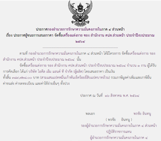 จัดซื้อ จัดจ้างประกาศผู้ชนะการเสนอราคา ประกาศผู้ชนะการเสนอราคา จัดซื้อเครื่องแต่งกาย ของ สำนักงาน คปต.ส่วนหน้า โดยวิธีเฉพาะเจาะจง ( ๓๘๙,๗๒๘.๐๐ บาท ) August 20, 2021 548 Share Facebook Twitter Google+ Telegram LINE กอ.รมน.ภาค ๔ สน.