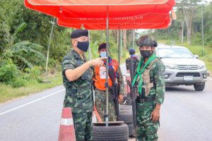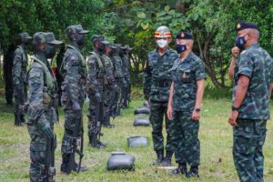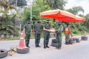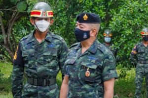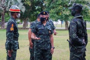 ต่อมาได้ไปตรวจเยี่ยม หน่วยฝึกทหารใหม่ กองพันทหารราบที่ 3 กรมทหารราบที่ 5 ค่ายมหาจักรีสิรินธร อำเภอนาทวี จังหวัดสงขลา โดยให้ปฏิบัติตามคำแนะนำในการฝึกทหารใหม่ที่หน่วยเหนือกำหนด พร้อมทั้งเน้นย้ำการปฏิบัติตามมาตรการป้องกันการแพร่ระบาดของเชื้อไวรัสโควิด-19 และมาตรการป้องกันโรคลมร้อน