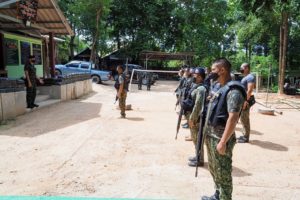 จากนั้นเดินทางไปที่ ชุดคุ้มครองคลองกวาง บ้านช้างไห้ หมู่ที่ 3 ตำบลคลองกวาง อำเภอนาทวี จังหวัดสงขลา ไปตรวจเยี่ยมชุดคุ้มครองคลองกวาง เพื่อติดตามการปฏิบัติงาน โดยเน้นย้ำมาตรการ รักษาความปลอดภัยฐานปฏิบัติการ, ให้มีการตั้งจุดตรวจหน้าฐานฯ ตลอด 24 ชั่วโมง, ต้องวิเคราะห์ กำหนดพื้นที่ปฏิบัติการ จุดที่ฝ่ายตรงข้ามสามารถใช้ก่อเหตุต่อฐานปฏิบัติการ เพื่อเป็นสมมุติฐานในการทำแผนเผชิญเหตุ และต้องปฏิบัติตามนโยบาย/สั่งการของ ผู้บังคับบัญชาอย่างเคร่งครัด