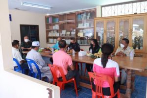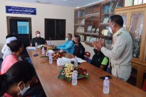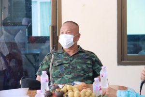 โดยแม่ทัพภาคที่ 4 กล่าวว่า “สถานการณ์การแพร่ระบาดของเชื้อไวรัส covid-19 ได้ส่งผลกระทบในวงกว้าง ทั้งด้านการดำรงชีวิต และด้านเศรษฐกิจ พี่น้องประชาชนได้รับความเดือดร้อน เช่นเดียวกับพี่น้องเกษตรกรในพื้นที่ต่าง ๆ ที่ได้รับผลกระทบจากราคาผลผลิตทางการเกษตรตกต่ำ และที่ผ่านมาผู้บัญชาการทหารบกได้มีนโยบายให้กองทัพบกช่วยเหลือ และบรรเทาความเดือดร้อนแก่พี่น้องเกษตรกรในพื้นที่ต่างๆ จนสถานการณ์คลี่คลายและดีขึ้นตามลำดับ และสำหรับการพบปะเยี่ยมเยียน กลุ่มเกษตรทรายขาว ผู้นำท้องที่ ผู้นำท้องถิ่น และส่วนที่เกี่ยวข้องในครั้งนี้ จะเห็นได้ว่าที่ผ่านมากลุ่มเกษตรกรในพื้นที่ทรายขาวมีความเข้มแข็งเป็นอย่างมาก สามารถรับมือกับสถานการณ์การแพร่ระบาดของเชื้อไวรัส covid-19 ได้อย่างครอบคลุม และแม้ที่ผ่านมาจะมีผู้ประกอบการรายใหญ่มารับซื้อทุเรียนจากในพื้นที่ได้โดยตรง แต่เมื่อเกิดสถานการณ์ covid-19 ก็ไม่ได้มีการสั่งซื้อสินค้าเพื่อนำไปจำหน่ายในห้างสรรพสินค้าชั้นนำได้ ทุกภาคส่วนก็มีการจัดการ และแก้ไขปัญหาอย่างเป็นระบบ นอกจากนี้ยังมีการรายงานถึงผู้ประกอบจากที่อื่นแอบอ้างการขายทุเรียนทรายขาวให้กับผู้บริโภค แต่ด้วยความร่วมมือ ร่วมใจ ของพี่น้องเกษตรกรทรายขาว ผู้นำในพื้นที่ และส่วนราชการที่เกี่ยวข้อง ได้ดำเนินงานด้านการประชาสัมพันธ์ เพื่อเป็นการกระตุ้นรายได้ โดยจำหน่ายทุเรียนทรายขาวจากเกษตรกรให้ถึงมือผู้บริโภคโดยตรงผ่านสื่อออนไลน์ โดยไม่ผ่านพ่อค้าคนกลาง ทำให้ปัญหาดังกล่าวลดลง ทั้งยังเพิ่มความเชื่อมั่นให้กับพี่น้องประชาชนและผู้บริโภคที่ได้สั่งซื้อทุเรียนทรายขาวโดยตรงอีกด้วย ถือเป็นการสร้างรายได้ให้แก่ชาวสวนทุเรียนได้เป็นอย่างดี นอกจากนี้ในเรื่องของระบบการขนส่งในประเทศก็สามารถมารับสินค้าได้โดยตรงถึงสวนเช่นกัน แต่จำเป็นต้องผ่านกระบวนการ การคัดกรองตามมาตรการการแพร่ระบาดของเชื้อไวรัสอย่างเคร่งครัด ขอชื่นชมเกษตรกรทรายขาว ผู้นำในพื้นที่ ตลอดจนส่วนที่เกี่ยวข้อง ที่ได้ร่วมมือ ร่วมใจแก้ไขปัญหาดังกล่าวให้สามารถผ่านพ้นวิกฤตไปได้ด้วยดี ขอบคุณในความเป็นแบบอย่างที่ดี และอยากให้นำสิ่งดีๆเหล่านี้ไปปรับใช้ให้เกิดประโยชน์ในพื้นที่ต่างๆด้วยเช่นกัน” และหลังจากการพบปะพูดคุย แม่ทัพภาคที่ 4 ได้มอบสิ่งของอุปกรณ์ในการป้องกันตนเองจากการแพร่ระบาดของเชื้อไวรัส covid-19 ให้กับผู้นำท้องที่ ผู้นำท้องถิ่น และสมาชิกกลุ่มเกษตรกร เพื่อเป็นขวัญและกำลังใจในการดำรงชีวิต และต่อสู้กับเชื้อโรคร้ายไปด้วยกัน