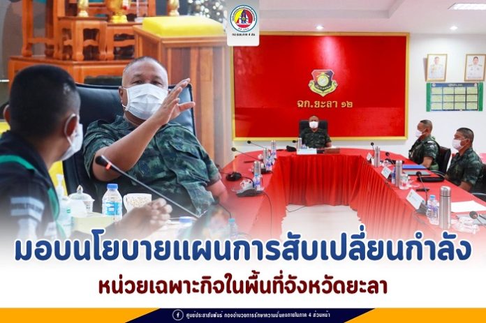วันนี้ (26 สิงหาคม 2564) พลโท เกรียงไกร ศรีรักษ์ แม่ทัพภาคที่ 4/ผู้อำนวยการรักษาความมั่นคงภายในภาค 4 ลงพื้นที่ยังหน่วยเฉพาะกิจกรมทหารพรานที่ 30 ตำบลตลิ่งชัน อำเภอบันนังสตา และหน่วยเฉพาะกิจยะลาที่ 12 ตำบลสะเตง อำเภอเมือง จังหวัดยะลา ตรวจเยี่ยมติดตามผลการปฏิบัติงานในห้วงที่ผ่านมา วางแผนแนวทางปรับโครงสร้างและการสับเปลี่ยนกำลังพลของหน่วย เพื่อหยุดช่วงว่างการก่อเหตุของกลุ่มผู้ก่อความไม่สงบ ที่จะอาศัยช่วงเวลาดังกล่าวก่อเหตุบั่นทอนความเชื่อมั่นแก่พี่น้องประชาชนที่มีต่อเจ้าหน้าที่รัฐ ทั้งนี้ผู้ที่จะลงมาปฏิบัติภารกิจในพื้นที่จังหวัดชายแดนภาคใต้จะต้องมีความพร้อมแล้วทั้งด้านร่างกาย และจิตใจ เรียนรู้ และเคารพกฎกติกาของพื้นที่ ไม่สร้างเงื่อนไข และยึดยุทธศาสตร์คนดีในการปฏิบัติงาน ควบคู่กับสถานการณ์การแพร่ระบาดของเชื้อไวรัส covid-19 อย่างเคร่งครัด