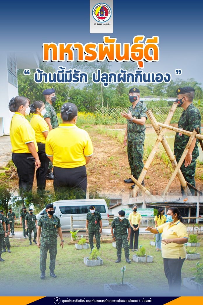 ที่ พื้นที่บ้านพัก ค่ายเทพสตรีศรีสุนทร ตำบลกะปาง อำเภอทุ่งสง จังหวัดนครศรีธรรมราช พลตรี ศานติ ศกุนตนาค ผู้บัญชาการกองพลทหารราบที่ 5 ตรวจเยี่ยมโครงการ “บ้านนี้มีรัก ปลูกผักกินเอง” ของ หน่วยขึ้นตรงกองพลทหารราบที่ 5 ที่อยู่ในเส้นทางหลักของ โครงการทหารพันธุ์ดี โดยได้ให้คำแนะนำแก่ หน่วยกองร้อยทหารม้า (ลาดตระเวน) ที่ 5 และ กองพันทหารม้าที่ 16 กองพลทหารราบที่ 5