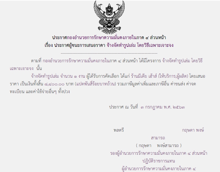 ประกาศผู้ชนะการเสนอราคา จ้างจัดทำรูปเล่ม โดยวิธีเฉพาะเจาะจง (8,400.00)(3)