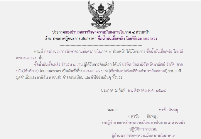 ประกาศผู้ชนะการเสนอราคา ซื้อน้ำมันเชื้อเพลิง โดยวิธีเฉพาะเจาะจง ( ๗,๘๔๙.๑๐ บาท )