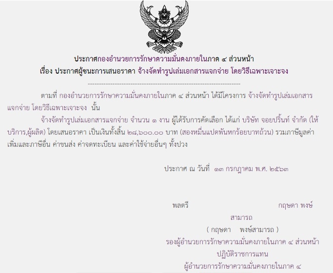 ประกาศผู้ชนะการเสนอราคา จ้างจัดทำรูปเล่มเอกสารแจกจ่าบ โดยวิธีเฉพาะเจาะจง (28,600.00)(10)