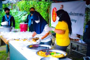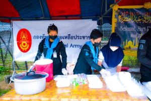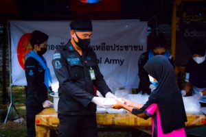 ที่ บริเวณหน้าสถานีรถไฟไอสะเตีย ตำบลบูกิต อำเภอเจาะไอร้อง จังหวัดนราธิวาสหน่วยเฉพาะกิจกรมทหารพรานที่ 48, กองร้อยทหารพรานที่ 4815 พร้อมด้วย ฝ่ายกิจการพลเรือน ชุดปฏิบัติการกิจการพลเรือนหญิง, ชุดปฏิบัติการกิจการพลเรือนกองร้อยทหารพรานที่ 4815 และกลุ่มสตรีในพื้นที่ ลงพื้นที่ร่วมกันจัดตั้งครัวสนามเฉพาะกิจในการประกอบอาหารเพื่อแจกจ่ายให้กับประชาชนในพื้นที่ เพื่อบรรเทาความเดือดร้อนและลดภาระค่าใช้จ่ายในครัวเรือนให้กับประชาชนในพื้นที่ โดยได้จัดทำข้าวไข่เจียวจำนวนกว่า 200 กล่อง แจกจ่ายให้กับพี่น้องประชาชนในพื้นที่ ซึ่งกิจกรรมอยู่ภายใต้มาตราการการป้องกันการแพร่ระบาดของเชื้อไวรัสโควิด-19 ตามหลัก D M H T T ของกรมควบคุมโรค กระทรวงสาธารณสุข ไม่ว่าจะเป็นการสวมหน้ากากอนามัย ล้างมือด้วยเจลแอลกอฮอล์ และการเว้นระยะห่าง เพื่อป้องกันการแพร่ระบาดของเชื้อไวรัสโควิด-19 อย่างเคร่งครัด