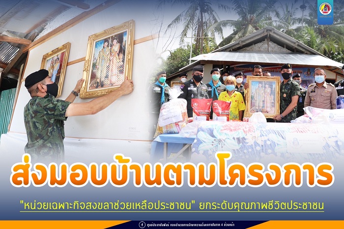 วันนี้ (3 กันยายน 2564) เวลา 10.00 น. พลตรี ศานติ ศกุนตนาค ผู้บังคับหน่วยเฉพาะกิจสงขลา ส่งมอบบ้านตามโครงการหน่วยเฉพาะกิจสงขลาช่วยเหลือประชาชน ให้แก่ นายผ่อง เพ็งแก้ว อายุ 56 ปี ณ บ้านเลขที่ 6 ตำบลสะท้อน อำเภอนาทวี จังหวัดสงขลา ประชาชนที่ได้รับการคัดเลือกเข้าโครงการหน่วยเฉพาะกิจสงขลาช่วยเหลือประชาชน เพื่อบรรเทาความเดือดร้อน ยกระดับคุณภาพชีวิตให้มีความเป็นอยู่ที่ดี พร้อมมอบพระบรมฉายาลักษณ์พระบาทสมเด็จพระมหาภูมิพลอดุลยเดชมหาราช บรมนาถบพิตร รัชกาลที่ 9 สมเด็จพระนางเจ้าสิริกิติ์