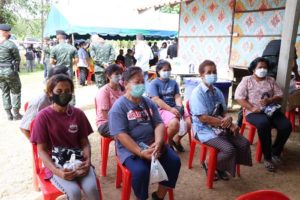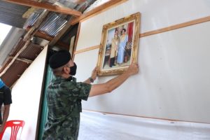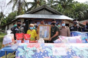 พระบรมราชินีนาถ พระบรมราชชนนีพันปีหลวงพระบรมฉายาลักษณ์พระบาทสมเด็จพระวชิรเกล้าเจ้าอยู่หัว สมเด็จพระนางเจ้าสุทิดา พัชรสุธาพิมลลักษณ พระบรมราชินี รวมทั้งชุดเครื่องนอน และเครื่องอุปโภค บริโภค โดยมี เจ้าหน้าที่ตำรวจตระเวนชายแดนที่ 43 หัวหน้าส่วนราชการ ผู้นำศาสนา และประชาชนในพื้นที่ร่วมให้การต้อนรับ