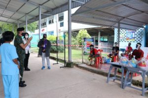 วันที่ 3 กันยายน 2564 เวลา 10.30 น. ที่ โรงเรียนชุมชนบ้านสะท้อน ตำบลสะท้อน อำเภอนาทวี จังหวัดสงขลา พลตรี ศานติ ศกุนตนาค ผู้บังคับหน่วยเฉพาะกิจสงขลา ลงพื้นที่พบปะบุคลากรทางการแพทย์ ให้กำลังใจผู้เฝ้าระวังสังเกตุอาการจากเชื้อไวรัสโคโรน่า 2019 (COVID-19) โดยมี นายชัยเดช ปาละวงศ์ นายอำเภอนาทวี หัวหน้าส่วนราชการ บุคคลากรทางการแพทย์ เจ้าหน้าที่ตำรวจ ทหาร อาสาสมัครสาธารณสุขประจำหมู่บ้านให้การต้อนรับ