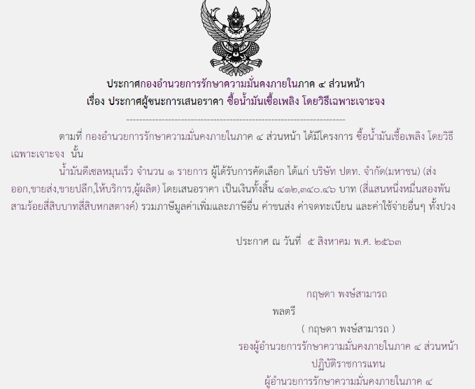จัดซื้อ จัดจ้างประกาศผู้ชนะการเสนอราคา ประกาศผู้ชนะการเสนอราคา ซื้อน้ำมันเชื้อเพลิง โดยวิธีเฉพาะเจาะจง (412,340.46)(1) August 5, 2020 732 Share Facebook Twitter Google+ Telegram LINE สบป.กอ.รมน.ภาค 4 สน.