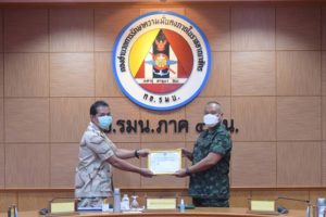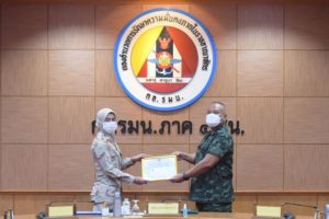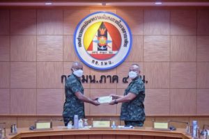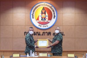 จากนั้นเวลา 13.30 น. แม่ทัพภาคที่ 4 เป็นประธานการประชุมหน่วยขึ้นตรงกองอำนวยการรักษาความมั่นคงภายในภาค 4 ส่วนหน้า ประจำเดือนกันยายน ผ่านระบบ VTC เพื่อติดตามผลการปฏิบัติงานตามนโยบาย และสั่งการในห้วงที่ผ่านมา เน้นย้ำข้อสั่งการให้แต่ละหน่วยนำไปปฏิบัติปรับใช้ให้เกิดประสิทธิภาพสูงสุดในการรักษาความมั่นคงปลอดภัยในพื้นจังหวัดชายแดนภาคใต้ ก่อนวาระการประชุม แม่ทัพภาคที่ 4 ได้มอบโล่เกียรติคุณให้แก่ศูนย์ปฏิบัติการอำเภอที่ให้การสนับสนุนการเสริมสร้างความเข้มแข็งให้แก่ชุดคุ้มครองตำบล และมอบใบประกาศเกียรติคุณให้แก่ชุดคุ้มครองตำบลที่มีผลการประเมินความเข้มแข็งดีเด่น ประจำปี 2564 (รอบเดือนเมษายน – กันยายน 2564) นอกจากนี้ยังได้มอบรางวัลให้กับหน่วย และกำลังพลที่มีผลการปฏิบัติงานดีเด่นในการบังคับใช้กฎหมายกับผู้ก่อเหตุรุนแรงในพื้นที่ เพื่อเป็นขวัญกำลังใจในการปฏิบัติภารกิจรักษาความมั่นคงปลอดภัยในพื้นที่จังหวัดชายแดนภาคใต้ได้อย่างมีประสิทธิภาพต่อไป โดยกล่าวว่า “ขอชื่นชมทุกภาคส่วนที่ได้ปฏิบัติหน้าที่เพื่อประชาชน และเพื่อพื้นที่จังหวัดชายแดนภาคใต้อย่างเต็มความสามารถ ในภาพรวมของสถานการณ์ความไม่สงบในพื้นที่จังหวัดชายแดนภาคใต้ดีขึ้นตามลำดับ ทั้งหมดเกิดจากการบรูณาการการทำงานจากทุกภาคส่วน ชุดคุ้มครองตำบล มีภารกิจหน้าที่สนับสนุนงานรักษาความสงบเรียบร้อยและความมั่นคงในพื้นที่จังหวัดชายแดนภาคใต้ ถือเป็นส่วนที่มีความสำคัญยิ่งในการสร้างสันติสุขให้เกิดขึ้น ที่ผ่านมาจะเห็นได้ว่าเจ้าหน้าที่ผู้ปฏิบัติงานมีความอดทน ทุ่มเทต่อหน้าที่ที่ได้รับหมอบหมายอย่างดี ตรงตามข้อสั่งการและแผนเสริมสร้างสันติสุขในพื้นที่จังหวัดชายแดนภาคใต้ แม้ในห้วงที่ผ่านมาจะเกิดวิกฤตจากสถานการณ์การแพร่ระบาดของเชื้อไวรัส covid-19 ทำให้การปฏิบัติงานบางครั้งเกิดความล่าช้า หรืออาจติดขัดในการดำเนินการไปบ้าง แต่ทุกภาคส่วนก็ได้ร่วมมือ ร่วมใจกันเดินหน้าเพื่อแก้ไขปัญหาต่างๆอย่างเต็มกำลัง ถือเป็นบทพิสูจน์ของความมีน้ำใจต่อกันในทุกภาคส่วน ขอบคุณที่ร่วมด้วยช่วยกัน เพื่อพื้นที่จังหวัดชายแดนภาคใต้ ทั้งนี้ทุกภาคส่วนจะต้องติดตามสถานการณ์ความเป็นไปของบ้านเมืองอย่างใกล้ชิด ปฏิบัติภารกิจด้วยความละเอียด รอบคอบ สอดคล้องกับนโยบายของหน่วยเหนือ ควบคู่กับรักษามาตรการการป้องกันการแพร่ระบาดของไวรัส covid-19 อย่างเคร่งครัด โดยพร้อมให้การสนับสนุนทุกภาคส่วนในทุกเมื่อทุกโอกาส โดยไม่ต้องรอคำสั่ง เพื่อการดำเนินการในส่วนที่เกี่ยวข้องให้