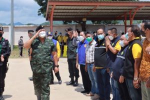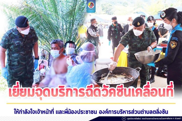 วันนี้ (16 กันยายน 2564) เวลา 10.30 น. ณ จุดบริการฉีดวัคซีนเคลื่อนที่ องค์การบริหารส่วนตำบลตลิ่งชัน อำเภอบันนังสตา จังหวัดยะลา พลโท เกรียงไกร ศรีรักษ์ แม่ทัพภาคที่ 4 / ผู้อำนวยการรักษาความมั่นคงภายในภาค 4 เดินทางตรวจเยี่ยม และให้กำลังใจเจ้าหน้าที่บุคลากรทางการแพทย์ และพี่น้องประชาชนที่เข้ารับบริการฉีดวัคซีนป้องกันเชื้อไวรัส covid-19 โดยได้พูดคุย สอบถาม ถึงสถานการณ์การแพร่ระบาดของเชื้อไวรัส covid-19 ในพื้นที่ ปัญหาข้อขัดข้องของการดำเนินงาน ตลอดจนร่วมประชาสัมพันธ์สร้างความตระหนักรู้ถึงมาตรการป้องกัน covid-19 และความสำคัญในการฉีดวัคซีนเพื่อสร้างภูมิคุ้มกันหมู่ให้กับพี่น้องประชาชน โดยมี พลตรี อุทิศ อนันตนานนท์ ผู้บังคับหน่วยเฉพาะกิจยะลา, ผู้บังคับหน่วยเฉพาะกิจกรมทหารพรานที่ 30 หัวหน้าส่วนราชการ, กำนัน, ผู้ใหญ่บ้าน, ส่วนที่เกี่ยวข้อง และพี่น้องประชาชนให้การต้อนรับ พร้อมกันนี้ แม่ทัพภาคที่ 4 ได้ร่วมกิจกรรมจับฉลากของขวัญ ของรางวัล ที่ทางองค์การบริหารส่วนตำบลตลิ่งชันได้จัดขึ้นเพื่อเป็นการกระตุ้นและเชิญชวนให้พี่น้องรับบริการฉีดวัคซีน ตลอดจนแจกจ่ายข้าวกล่อง ของว่าง จากการสนับสนุนของส่วนราชการ และพี่น้องประชาชนในพื้นที่นำมาร่วมกิจกรรมในครั้งนี้