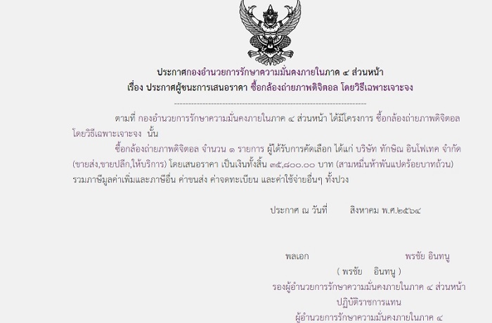 ประกาศผู้ชนะการเสนอราคา ซื้อกล้องถ่ายภาพดิจิตอล โดยวิธีเฉพาะเจาะจง (35,800.00 บาท)
