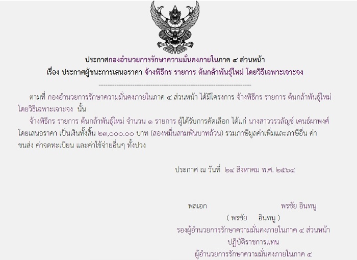 ประกาศผู้ชนะการเสนอราคา จ้างพิธีกร รายการ ต้นกล้าพันธุ์ใหม่ โดยวิธีเฉพาะเจาะจง (23,000.00 บาท)