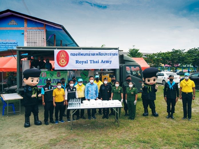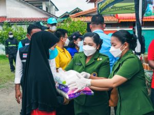ที่ โรงเรียนวัดสถิตชลธาร หมู่ที่ 2 บ้านบางตาวา อำเภอหนองจิก จังหวัดปัตตานี ฝ่ายกิจการพลเรือนหน่วยเฉพาะกิจกรมทหารพรานที่ 43 จัดกิจกรรม ARMY DELIVERY “ร่วมเป็นกำลังใจ ต้านภัยโควิด-19 ” โดยจัดทำอาหารข้าวมันไก่ทอด ปรุงสุก สะอาด ถูกหลักอนามัย ถูกต้องตามหลักศาสนา (ฮาลาล) จำนวน 600 กล่อง น้ำดื่ม จำนวน 600 ขวด และเครื่องดื่มชาชัก จำนวน 600 แก้ว (แก้วเล็ก) แจกจ่ายให้กับประชาชนที่เข้ารับการฉีดวัคซีน จำนวน 600 คน โดยมีประชาชนในพื้นที่เข้ารับการฉีดวัคซีนมากกว่า 500 คน