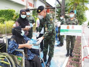 ที่ องค์การบริหารส่วนจังหวัดปัตตานี อำเภอเมือง จังหวัดปัตตานี พันเอก กฤศณัฏฐ์ จันทร รองผู้บังคับหน่วยเฉพาะกิจปัตตานี ลงพื้นที่ร่วมดำเนินกิจกรรม “มีแล้วแบ่งปัน” มอบอาหารกล่องพร้อมน้ำดื่ม จำนวน 400 ชุด ให้กับประชาชนผู้มารับบริการฉีดวัคซีนป้องกันโควิด-19 เพื่อเป็นการช่วยลดผลกระทบด้านค่าครองชีพ รวมถึงเป็นการให้กำลังใจพี่น้องชาวปัตตานี และบุคลากรทางการแพทย์ให้ผ่านพ้นวิกฤตโควิด-19 ครั้งนี้ไปด้วยกัน โดยมี นายสมนึก พรหมเขียว รองผู้ว่าราชการจังหวัดปัตตานี, นายแพทย์เจ๊ะอิดเร๊ะ ดือเระ ผู้อำนวยการโรงพยาบาลปัตตานี และ เจ้าหน้าที่จิตอาสาองค์การบริหารส่วนตำบลนาประดู่ /องค์การบริหารส่วนจังหวัดปัตตานี เข้าร่วมในกิจกรรม