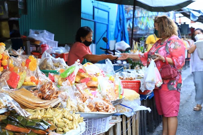 ตั้งแต่ช่วงเช้า ที่ตลาดสดยะลา ได้มีประชาชนชาวไทยพุทธ ทยอยออกมาจับจ่าย เลือกซื้อขนมตามประเพณีเดือนสิบ กันอย่างต่อเนื่อง ทั้ง ขนมต้ม ขนมลา ขนมพอง ขนมบ้า ขนมดีซำ ขนมเจาะหู เพื่อเตรียมนำไปทำบุญใหญ่ ส่งตา-ยาย ที่วัดใกล้บ้าน ส่วนราคาขนม ในปีนี้ยังคงเดิม ขนมลา กิโลกรัมละ 140 บาท ขายเป็นพับๆ ละ 50 บาท ขนมเจาะหู 100 ลูก ราคา 100 บาท ขนมต้ม กิโลกรัมละ 150 บาท ส่วนขนมพอง ขนมกง ขนมบ้าฯลฯ จัดแบ่งขายเป็นถุงๆ ถุงละ 20 – 60 บาท