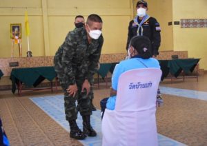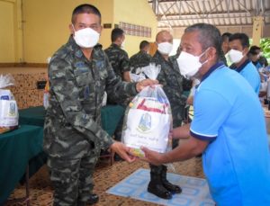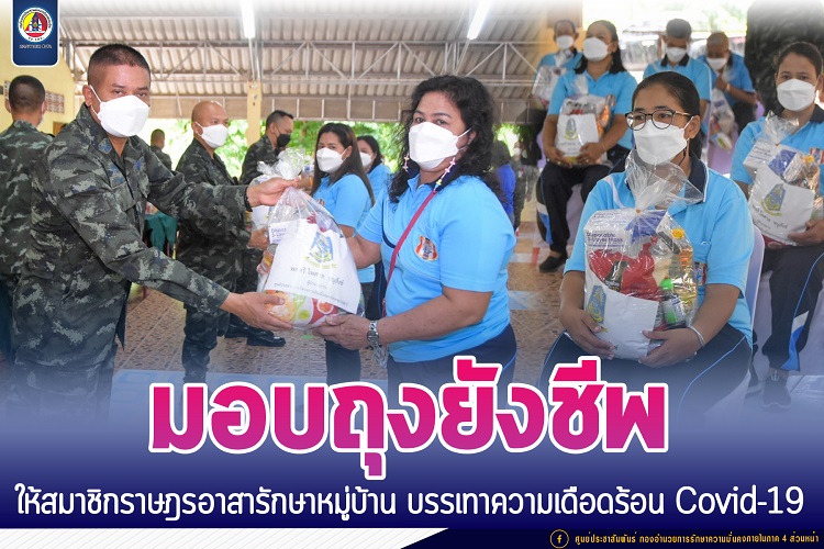 เมื่อวันที่ 23 กันยายน 2564 เวลา 09.00 น. ที่ วัดบ้านเก่า ตำบล เปียน อำเภอสะบ้าย้อย จังหวัดสงขลา พลตรี ไพศาล หนูสังข์ ผู้บัญชาการกองพลทหารราบที่ 15 /ผู้อำนวยการศูนย์ประสานงานโครงการอันเนื่องมาจากพระราชดำริ พร้อมด้วย พันเอกพสุธาร สมิตานนท์ ผู้บังคับการกรมสนับสนุน กองพลทหารราบที่15 / หัวหน้าคณะทำงานที่ 4 พันเอก สฐิรพงษ์ อาจหาญ รองผู้บังคับหน่วยเฉพาะสงขลา ลงพื้นที่ พบปะ เยี่ยมเยียน ให้กำลังใจพี่น้องสมาชิกราษฎรอาสารักษาหมู่บ้าน (อรบ.) กองพัน อรบ.เปียน โดยได้สอบถามความเป็นอยู่ ปัญหาข้อขัดข้องในการปฏิบัติงาน สถานการณ์ความปลอดภัยในพื้นที่ รวมถึงได้เข้าเยี่ยมเยียน สมาชิก อรบ.ที่มีความลำบาก ได้รับผลกระทบจากสถานการณ์การแพร่ระบาดของเชื้อไวรัสโควิด-19 ซึ่งเป็นกลุ่มเปราะบาง ผู้สูงอายุ โรคชรา ข้อเข่าเสื่อม อยู่ในพื้นที่ห่างไกล ขาดการดูแล และขาดการได้รับความช่วยเหลือ จำนวน 5 ราย ประกอบด้วย 1.นาง เมียด จระจิตสม อายุ 65 ปี 2.นาง สมสุข จันทร์ลาบ อายุ 65 ปี 3.นาง สังเวียน มณีรัตน์ อายุ 62 ปี 4.นาย เอื้อม ยอดทองคำ อายุ 71 ปี และ 5.นาย นิยม ช่วยสุข อายุ 77 ปี ในการนี้ พลตรีไพศาล หนูสังข์ และคณะได้พบปะ เยี่ยมเยียน ให้กำลังใจ สอบถามความเป็นอยู่ และความต้องการในช่วงสถานการณ์โควิด-19 พร้อมทั้งมอบความห่วงใย มอบถุงยังชีพ เครื่องอุปโภค – บริโภค เจลแอลกอฮอล์ และหน้ากากอนามัย สร้างความปลาบปลื้มใจให้แก่สมาชิกราษฎรอาสารักษาหมู่บ้าน (อรบ.) เป็นอย่างมาก