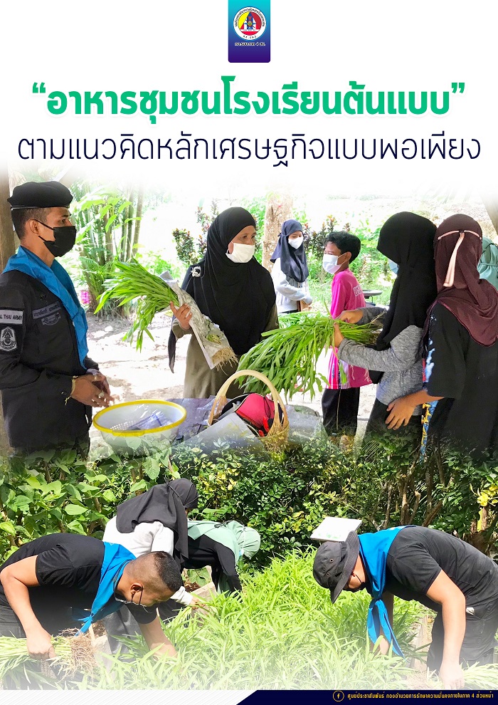 หน่วยเฉพาะกิจกรมทหารพรานที่ 47 จัดกำลังพลชุดปฏิบัติการกิจการพลเรือน ร่วมกับ ยุวเกษตรโรงเรียนบ้านตันหยง ร่วมกันดูแล และพัฒนาพื้นที่ “โครงการอาหารชุมชนโรงเรียนต้นแบบ” ตามหลักปรัชญาเศรษฐกิจพอเพียง ซึ่งตั้งอยู่ในศูนย์การเรียนรู้เศรษฐกิจพอเพียง โรงเรียนบ้านตันหยง หมู่ที่ 2 ตำบลบาโร๊ะ อำเภอยะหา จังหวัดยะลา เพื่อมุ่งเน้นให้พี่น้องประชาชนในพื้นที่สามารถพึ่งพาตนเองได้ อีกทั้งเป็นแหล่งเรียนรู้ให้กับเยาวชน เพื่อศึกษา และพัฒนาต่อยอดให้ดียิ่งขึ้นจนเกิดความยั่งยืนในอนาคต ซึ่งปัจจุบันสามารถดำเนินการเก็บผลผลิตทางการเกษตรจาก “โครงการอาหารชุมชนโรงเรียนต้นแบบ” เพื่อนำไปจำหน่ายให้กับพี่น้องประชาชนภายในชุมชน ในราคาย่อมเยาว์ เพื่อเป็นการลดรายจ่ายของพี่น้องประชาชน ในช่วงการแพร่ระบาดของเชื้อ COVID-19 อีกทั้งรายได้จากการจำหน่ายผลผลิตดังกล่าว