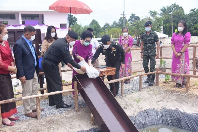 วันนี้ 26 กันยายน 2564 เวลา 09.00 น. ที่ โรงเรียนวัดกำแพงถม หมู่ที่ 5 ถนนกำแพงถม – เขาปูน บ้านกำแพงถม ตำบลนาเรียง อำเภอพรหมคีรี จังหวัดนครศรีธรรมราช พลโทเกรียงไกร ศรีรักษ์ แม่ทัพภาคที่ 4 พร้อมด้วย ดร.สุธาสินี นิติสาครินทร์ กรรมการผู้จัดการ บริษัท ฟิล์มมาสเตอร์ จำกัด เป็นประธานเปิด “อาคาร ดร.สุธาสินี นิติสาครินทร์” พร้อมส่งมอบให้กับคณะครู นักเรียนใช้ประโยชน์ในการจัดการเรียนการสอน โดยมีนายอำเภอพรหมคีรี ผู้บัญชาการกองพลพัฒนาที่ 4 ส่วนราชการ ผู้บริหาร คณะครู ผู้ปกครอง นักเรียน และส่วนที่เกี่ยวข้องร่วมพิธี ภายใต้มาตรการป้องกันการแพร่ระบาดของเชื้อไวรัสโคโรน่า 2019 (covid-19) อย่างเคร่งครัด ก่อนเดินเยี่ยมชมอาคารเรียน และเยี่ยมชมศูนย์การเรียนรู้ทางการเกษตร โดยกองพันทหารช่างที่ 402 กองพลพัฒนาที่ 4 ได้เข้ามาดำเนินการทำแปลงต้นแบบเกษตรแบบผสมผสาน ปลูกพืชผักสวนครัว สร้างบ่อเลี้ยงปลานิลและปลาดุก ซึ่งเป็นจุดเริ่มต้นของโครงการอาหารกลางวันแก่นักเรียน