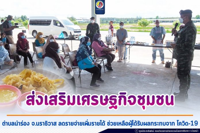 ที่ค่ายกัลยาณิวัฒนา ตำบล กะลุวอเหนือ อำเภอเมือง จังหวัดนราธิวาส ส่วนกิจการพลเรือน ฝ่ายกิจการพลเรือน ศูนย์ปฏิบัติการกองทัพบก ร่วมกับ หน่วยเฉพาะกิจนราธิวาส และ มหาวิทยาลัยนราธิวาสราชนครินทร์ จัดกิจกรรมส่งเสริมอาชีพ ตำบล มั่นคง มั่งคั่ง ยั่งยืน ตามตัวแบบทุนปรัชญาเพื่อความมั่นคงจังหวัดนราธิวาส เพื่อช่วยเหลือผู้ได้รับผลกระทบจากสถานการณ์การแพร่ระบาดของโรคติดเชื้อไวรัสโคโรน่า Covid-19 ระลอกใหม่ และเพื่อเป็นการลดรายจ่ายเพิ่มรายได้ รวมถึงเสริมสร้างความเป็นอยู่ที่ดี โดยในครั้งนี้ พลตรี ไพศาล หนูสังข์ ผู้บัญชาการกองพลทหารราบที่ 15 / ผู้บังคับหน่วยเฉพาะกิจนราธิวาส และคณะ ได้ลงพื้นที่พบปะเยี่ยมเยียนผู้เข้ารับการอบรมอาชีพ ในกิจกรรมดังกล่าว