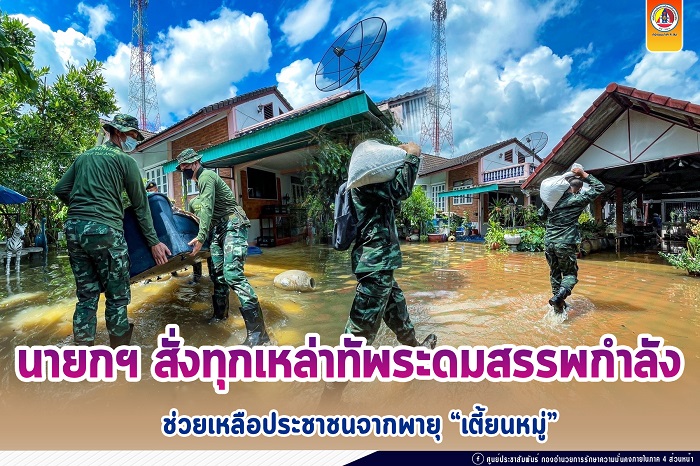 พลโท คงชีพ ตันตระวาณิชย์ โฆษกกระทรวงกลาโหม เปิดเผยว่า พลเอก ประยุทธ์ จันทร์โอชา นายกรัฐมนตรี และรัฐมนตรีว่าการกระทรวงกลาโหม ได้ย้ำสั่งการให้ทุกเหล่าทัพ ติดตามสถานการณ์สภาพอากาศ พร้อมทั้งระดมเครื่องมือช่างและกระจายกำลังลงไปสนับสนุนช่วยเหลือบรรเทาความเดือดร้อนของประชาชนที่ได้รับผลกระทบจากสถานการณ์อุทกภัยพายุโซนร้อน “เตี้ยนหมู่” ที่เกิดขึ้นวงกว้างในพื้นที่ 27 จังหวัด ให้ทั่วถึงและครอบคลุมประชาชนที่ได้รับความเดือดร้อนกว่า 58,900 ครัวเรือน โดยให้จัดอากาศยานไร้คนขับบินสำรวจพื้นที่ประสบอุทกภัยและสนับสนุนทำหน้าที่ร่วมกับจังหวัดและอำเภอ จนกว่าสถานการณ์จะคลี่คลายและต่อเนื่องไปถึงการฟื้นฟู เพื่อให้พี่น้องประชาชนสามารถกลับมาใช้ชีวิตปกติได้โดยเร็ว