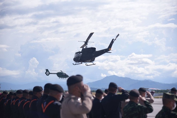 ทั้งนี้ได้รับพระมหากรุณาธิคุณจากพระบาทสมเด็จพระเจ้าอยู่หัว ให้มีพิธีพระราชทานเพลิงศพ เป็นกรณีพิเศษ แก่ผู้กล้าทั้ง 3 นาย ต่อไป โดยมีพลตำรวจตรี โพธ สวยสุวรรณ รองผู้บัญชาการตำรวจภูธรภาค 9 ,พลตรีไพศาล หนูสังข์ ผู้บัญชาการกองพลทหารราบที่ 15 /ผู้บังคับหน่วยเฉพาะกิจนราธิวาส ตลอดจนผู้บังคับบัญชา ทั้งตำรวจ ทหาร และฝ่ายปกครอง ร่วมเคารพศพ ไว้อาลัย ภายใต้มาตรการป้องกันการแพร่ระบาดของเชื้อไวรัส covid-19 อย่างเคร่งครัด