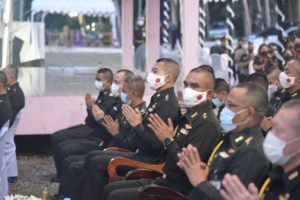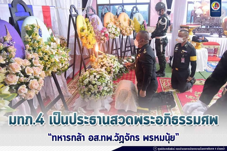 วันนี้ 1 ตุลาคม 2564 เวลา 18.00 น. ที่วัด เขมาราม (วัดควนยาว) ตำบลเคร็ง อำเภอชะอวด จังหวัดนครศรีธรรมราช พลโทเกรียงไกร ศรีรักษ์ แม่ทัพภาคที่ 4 / ผู้อำนวยการรักษาความมั่นคงภายในภาค 4 เดินทางเป็นประธานในพิธีสวดพระอภิธรรมศพ อาสาสมัครทหารพราน วัฏจักร พรมนุ้ย รองผู้บังคับชุดปฏิบัติการ กองร้อยทหารพรานที่ 4601 กรมทหารพรานที่ 46 ที่ได้เสียชีวิตหลังเจ้าหน้าที่ 3 ฝ่าย บังคับใช้กฎหมายต่อผู้ก่อความไม่สงบในพื้นที่ ปฏิบัติการจรยุทธ์ทำการพิสูจน์ทราบแหล่งหลบซ่อนพักพิงของกลุ่มผู้ก่อเหตุรุนแรง ในพื้นที่ บ้านฮูแตยือลอ ตำบลบาเระใต้ อำเภอบาเจาะ จังหวัดนราธิวาส เมื่อวันที่ 28 กันยายน ที่ผ่านมา โดยมีผู้บังคับบัญชา กำลังพลเพื่อนทหาร รวมไปถึงคณะญาติ และพี่น้องประชาชนในพื้นที่ เข้าร่วมพิธีสวดพระอภิธรรม เพื่อแสดงความไว้อาลัยต่อวีรชนผู้กล้า อีกทั้งเป็นการสร้างขวัญและกำลังใจให้กับญาติและครอบครัวของผู้เสียชีวิต ภายใต้มาตรการการป้องกันการแพร่ระบาดของเชื้อไวรัส covid-19 อย่างเคร่งครัด