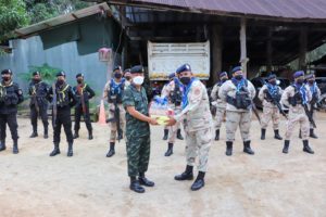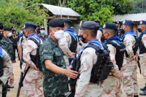 ทั้งนี้ พลตรี ปราโมทย์ พรหมอินทร์ รองผู้อำนวยการรักษาความมั่นคงภายในภาค 4 ส่วนหน้า ได้พบปะพูดคุยให้กำลังใจ เจ้าหน้าที่ชุดคุ้มครองตำบลตันหยงมัส พร้อมมอบแนวทางการปฏิบัติงาน และมาตรการการเฝ้าระวังป้องกันฐาน การตั้งจุดตรวจ จุดสกัด โดยเน้นย้ำทุกคนต้องไม่ประมาท ระมัดระวังในการปฏิบัติงาน และมีความพร้อมตื่นตัวอยู่เสมอ เนื่องจากเป็นห้วงของการสับเปลี่ยนกำลัง และประสานการทำงานร่วมกับหน่วยเฉพาะกิจในพื้นที่อย่างใกล้ชิด เพื่อให้การดูแลความปลอดภัยในพื้นที่เกิดประสิทธิภาพมากยิ่งขึ้น พร้อมกันนี้ได้ฝากความห่วงใยให้เจ้าหน้าที่ได้ดูแลตนเองให้ปลอดภัยจากเชื้อไวรัส Covid -19 อีกด้วย